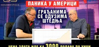 GOLDENSPACE d.o.o. je firma sa kojom redovno analiziramo cene investicionog zlata na svetskom tržištu, takođe i ekonomsko-privredne trendove u svetu i regionu. Investiciono zlato, istorijski je potvrđeno, predstavlja najbolji oblik zaštite kapitala. Ekonomska kriza neće poštedeti nikog. Iskusni kažu: „Ko ima ZLATO, ima NOVAC“. Štednja u investicionom zlatu, najbolji je vid štednje. GOLDENSPACE d.o.o., prvi je i jedini generalni zastupnik rafinerije sa LBMA sertifikatim u Srbiji, tako da građanima i pravnim licima pruža mogućnost da nabave investiciono zlato po najpovoljnijim uslovima. Dr Dragan Dejković, vlasnik firme GOLDENSPACE d.o.o., bavi se investicionim zlatom preko 18 godina i „pionir“ je u poslovima sa investicionim zlatom na našim prostorima, veoma često razgovara i finansijski savetuje građane koji imaju potrebu da na kvalitetan način upravljaju zarađenim novcem.